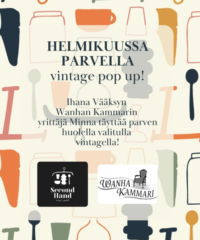 Tuu siis helmikuussa parvelle tekemään upeita löytöjä Wanhan Kammarin vintage pop upista!